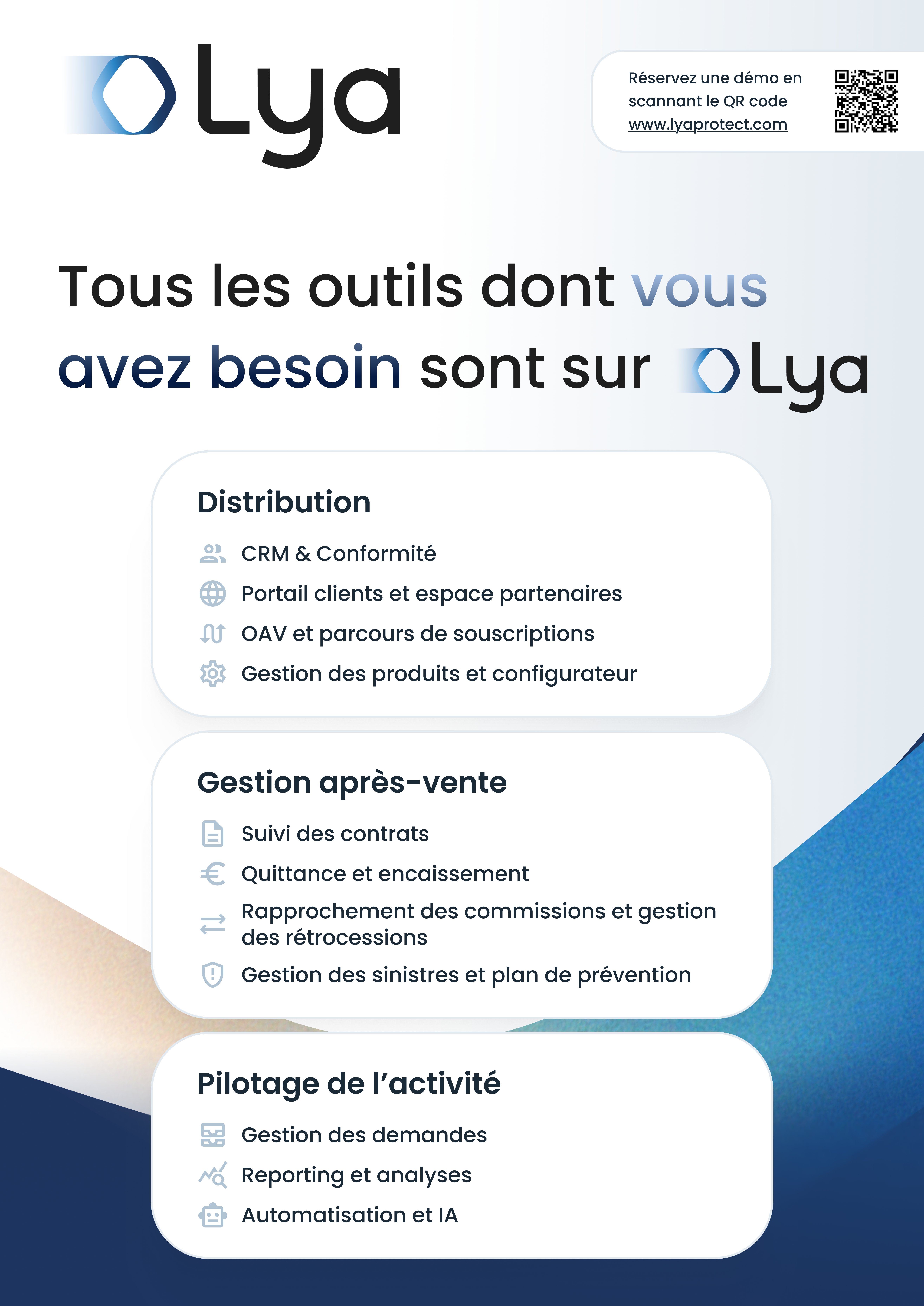 Lya sécurise votre activité et libère votre temps pour renforcer votre relation client. Devenez le courtier de demain, dès aujourd'hui.